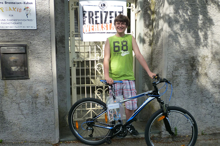 Dieses Projekt läuft seit Juli 2010. Elf Mountainbikes standen an der Bickebergschule zur Verfügung. Aber wie kommen arme Kinder und Jugendliche nun in den Genuss dieser Räder? Hier braucht es Personen, die die Jugendlichen kennen und wissen, welche Kinder kein Fahrrad besitzen. Das machen die Sozialpädagogen, die den Ganztagsbereich, also den Bereich außerhalb des Schulunterrichts in der Bickebergschule abdecken. Aber wer macht mit den Jugendlichen dann die Ausfahrten? Wer bringt ihnen bei, sich mit dem Rad verkehrsgerecht zu verhalten? Wer prüft, ob die Räder nach der Benutzung auch wieder gesäubert werden? Dazu braucht man engagierte Trainer, die pünktlich und zuverlässig solche Kurse leiten. Diesen Personen geben wir etwas von unserem Geld – für Trainingsstunden. Zu besonders günstigen Konditionen konnten bei der Fa. Sport-Müller einheitliche Trikotkombinationen und Helme beschafft werden, mit Aufdruck der Lions Freizeitwerkstatt.