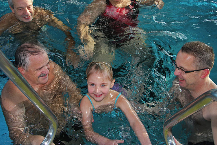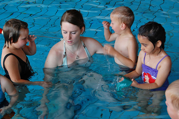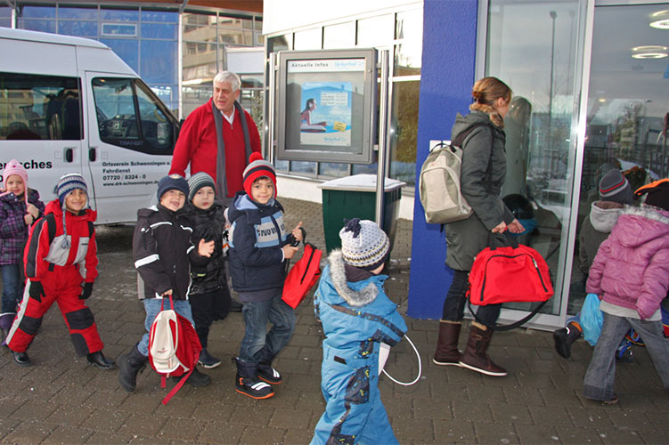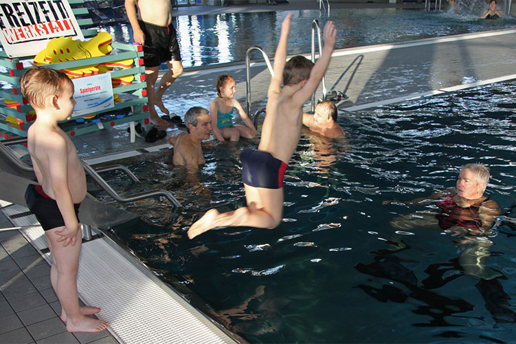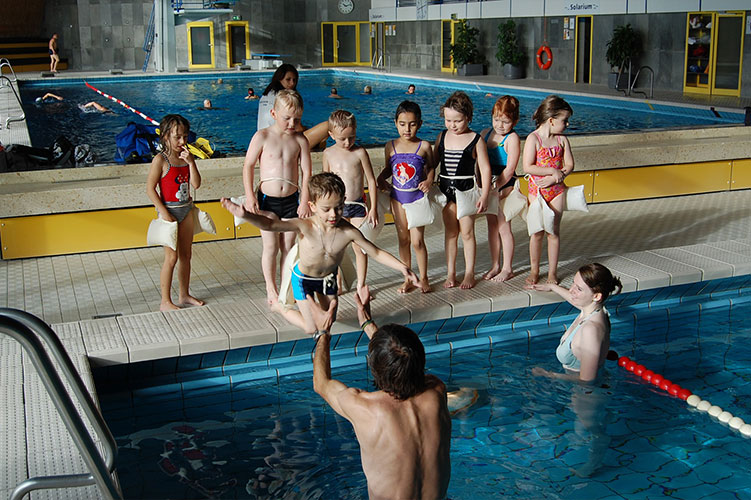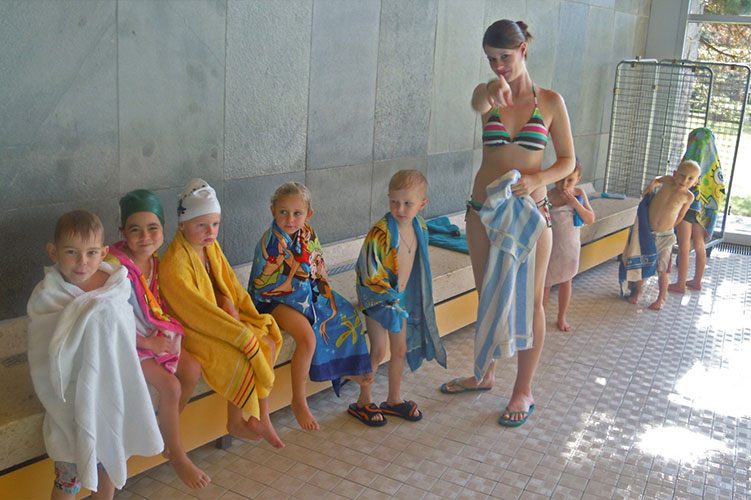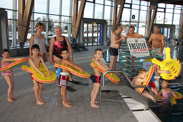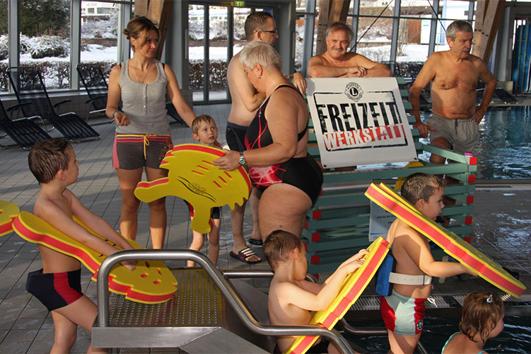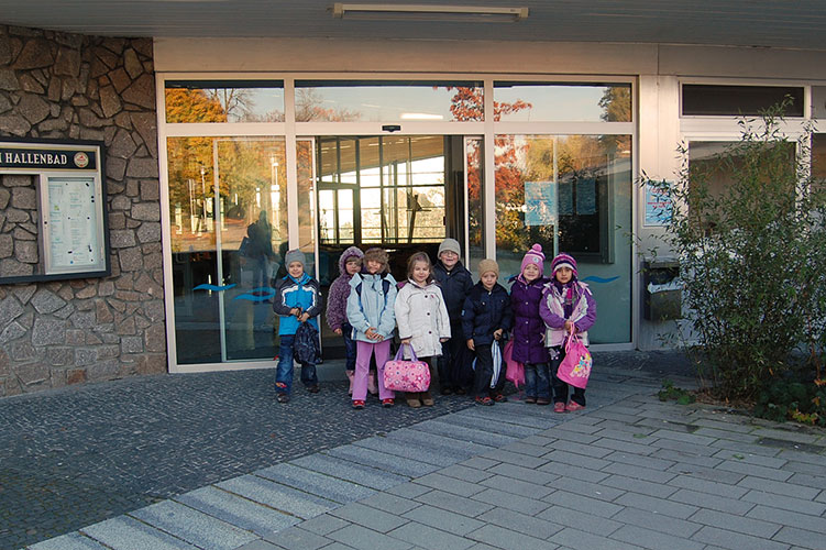 Das Projekt „Seepferdchen“ läuft seit Oktober 2010. Kinder, zwischen fünf und sechs Jahren können das Schwimmen erlernen. Wen braucht man hierzu, außer den Kindern? Zunächst einmal die Bäder und Schwimmlehrer. Mit denen wurde ein Sonderpreis für die Schwimmkurse vereinbart. Und wie kommen die Kinder dorthin? Das macht das Rote Kreuz. Wer koordiniert die Kindergärten? Das macht das Amt für Familie, Jugend und Soziales, eine sehr engagierte Dame, Frau Waller. Wer legt fest, welche Eltern den Schwimmkurs bezahlen können und welche nicht? Das machen die Kindergärtnerinnen zusammen mit Frau Waller. Das erfahren die Kinder gar nicht.